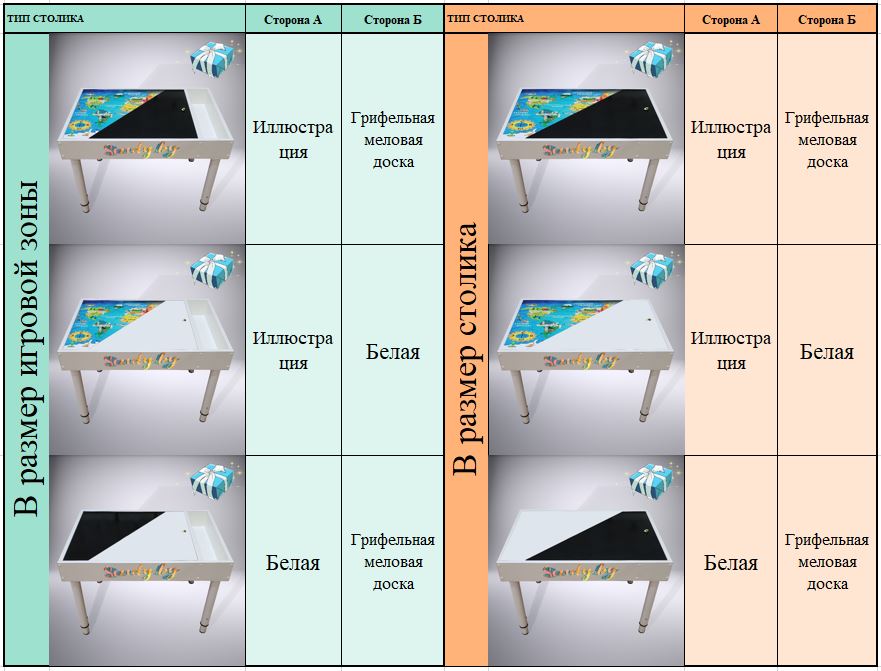 Каждая крышка у столика ДВУСТОРОННЯЯ и может быть: