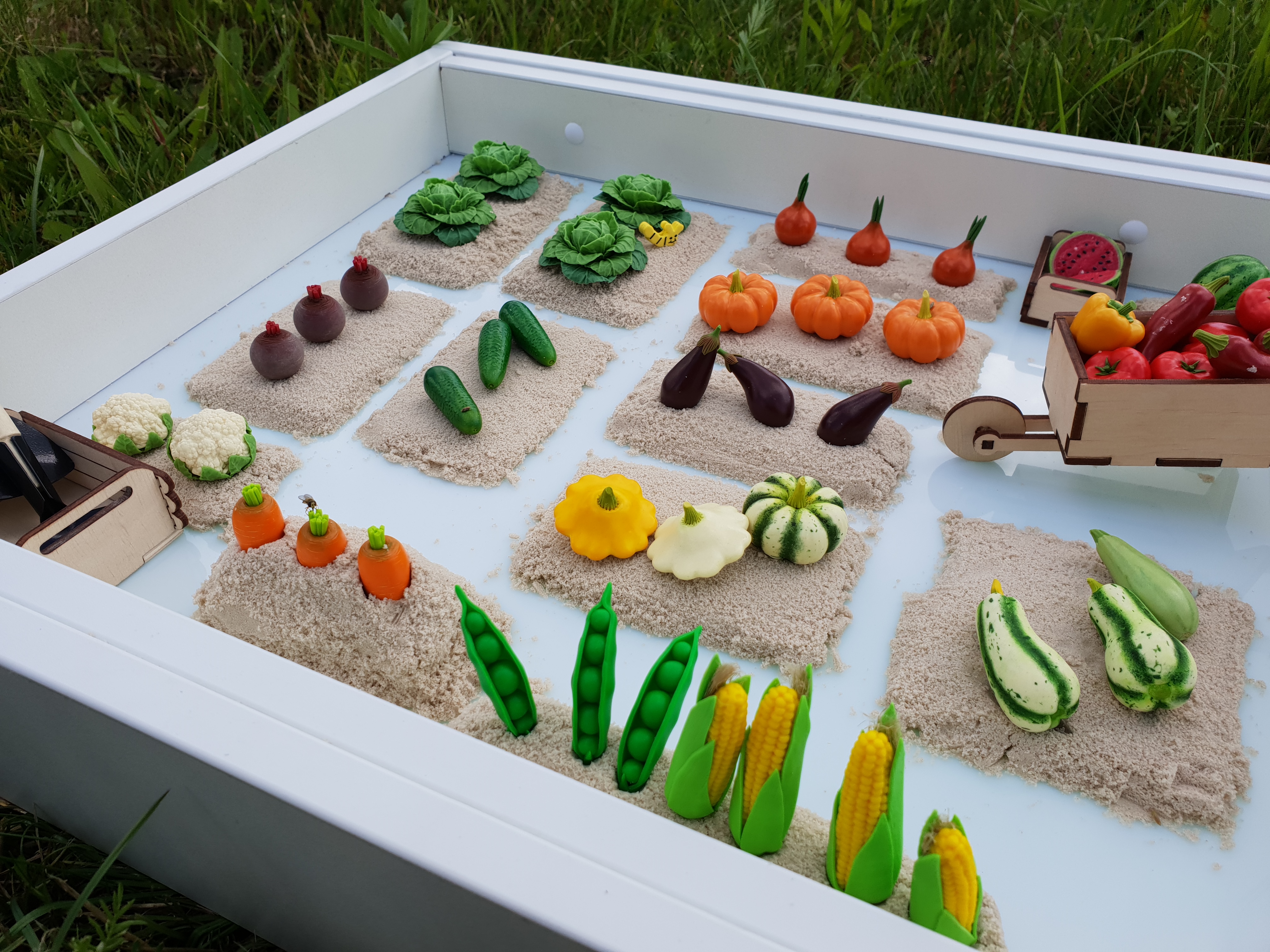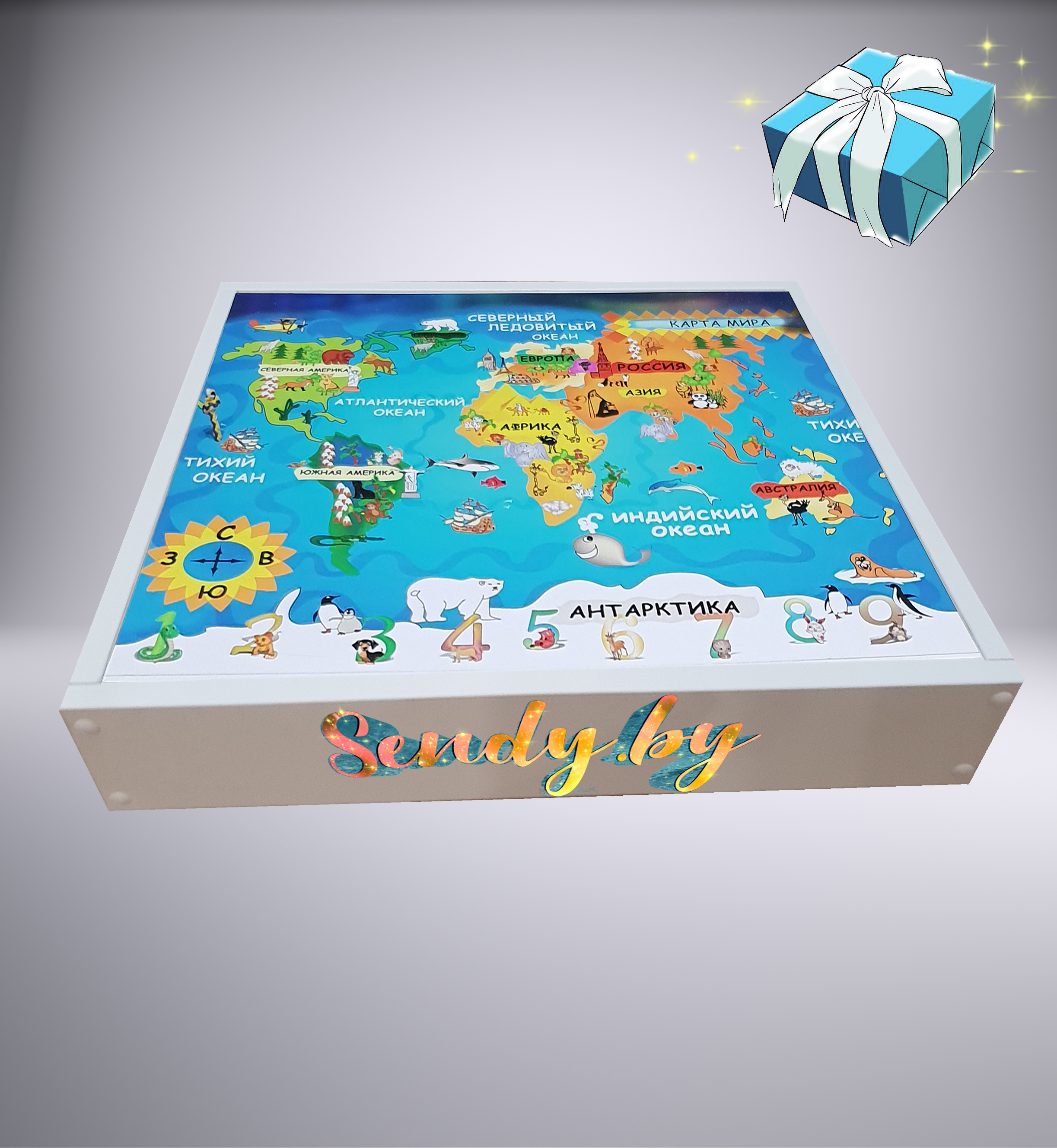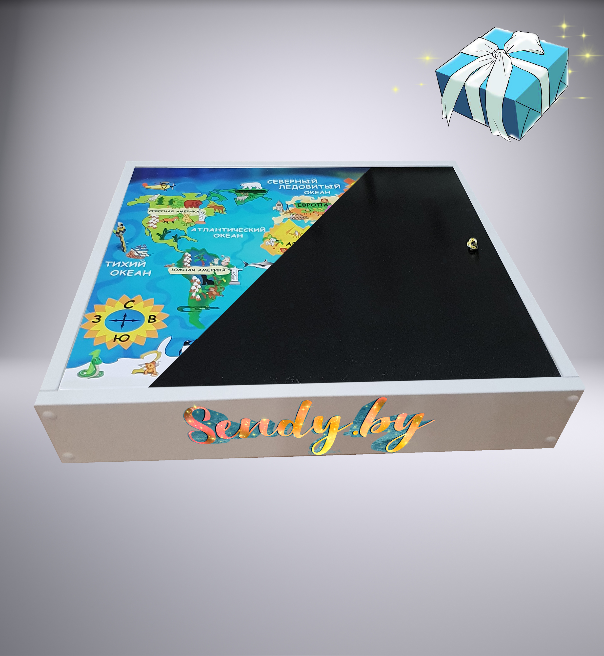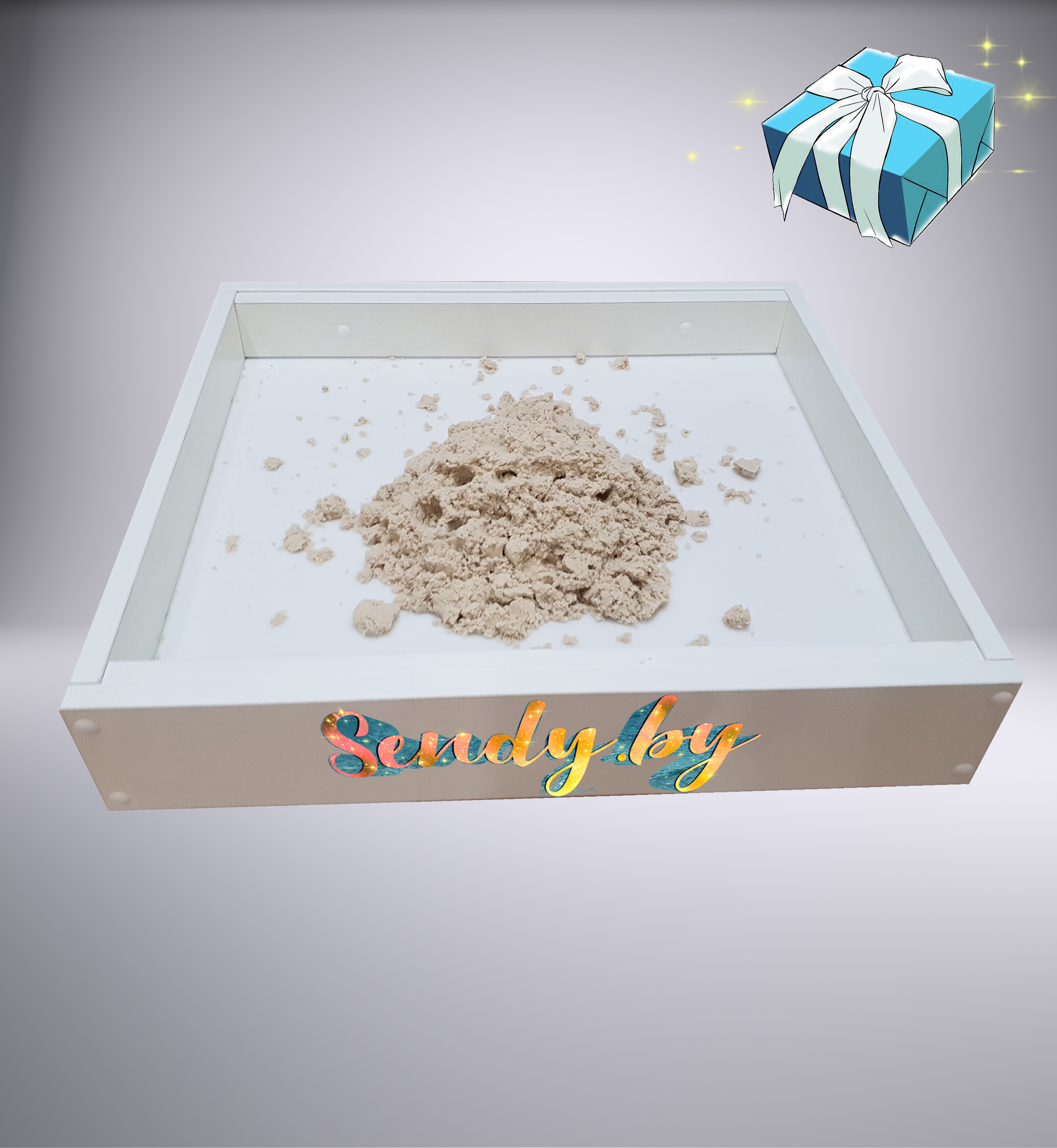 В ПОДАРОК вы получите всё необходимое для того, чтобы сразу приступить к игре: КВАРЦЕВЫЙ ПЕСОК, ЩЕТОЧКУ для его уборки и САВОЧЕК, ГРЕБЕШОК для рисования песочком, МЕЛОК и крепления для установки крышки в качестве МОЛЬБЕРТА.