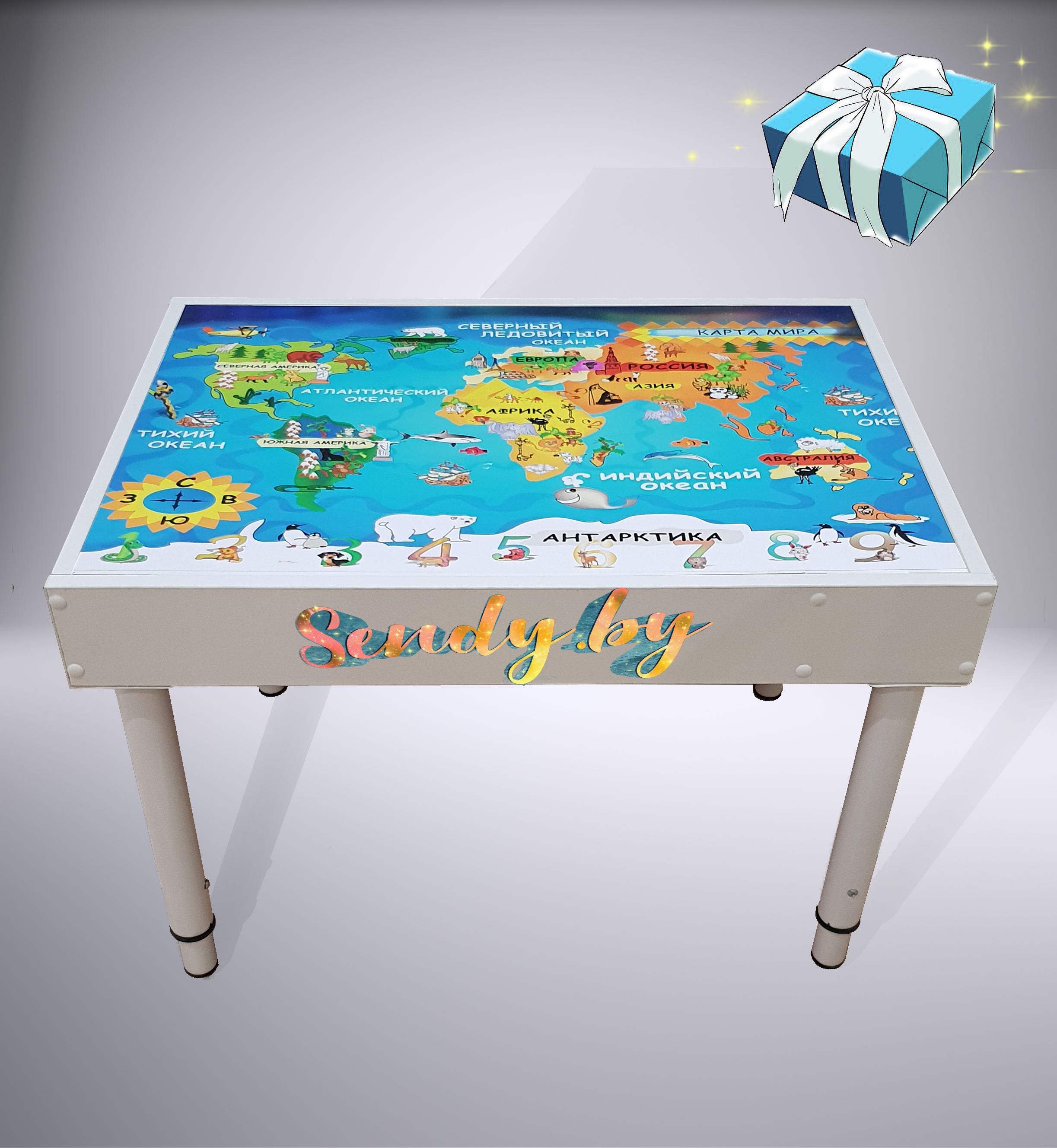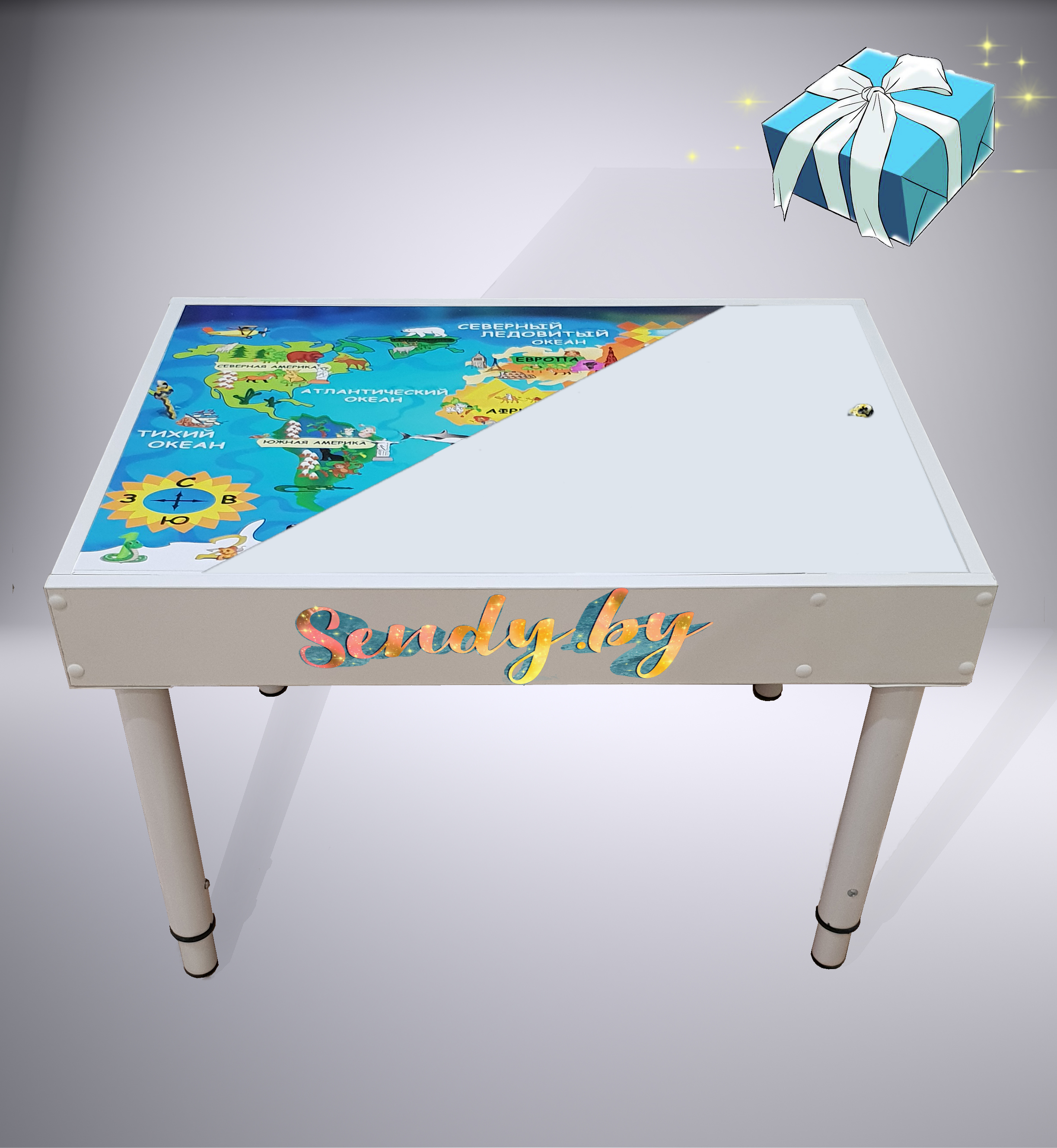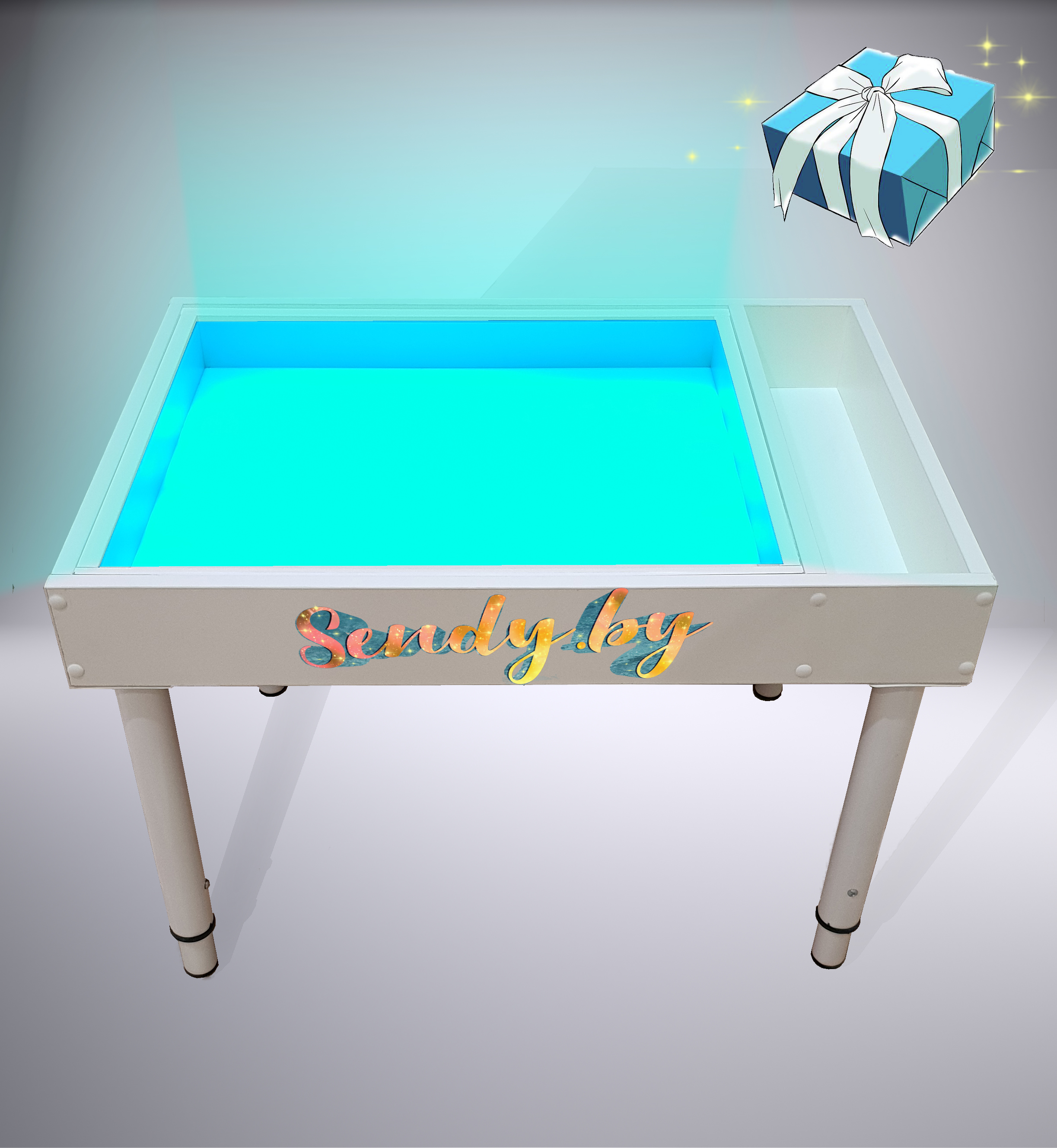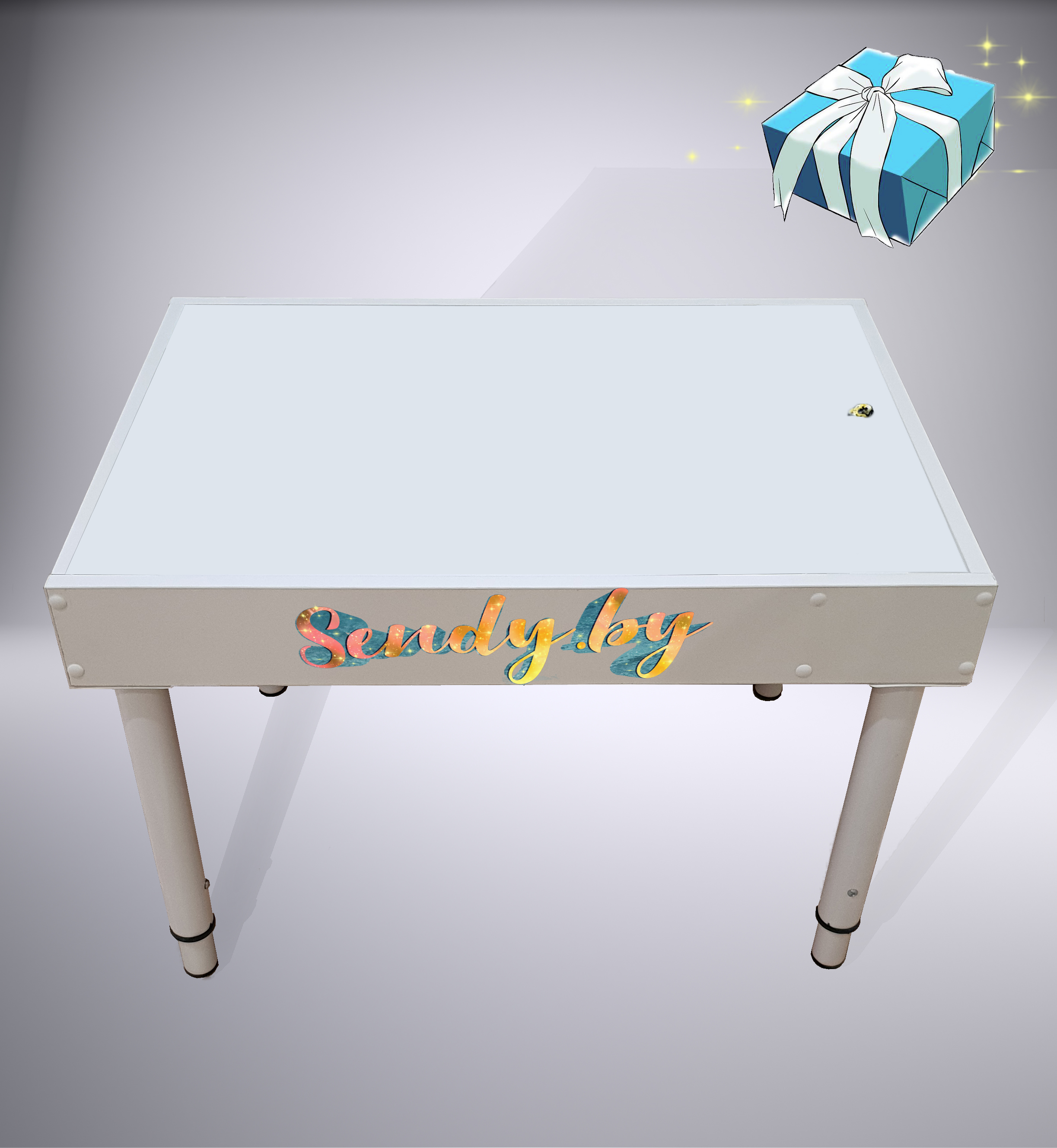 В ПОДАРОК к столику вы получите всё необходимое для того, чтобы сразу приступить к игре: КВАРЦЕВЫЙ ПЕСОК, ЩЕТОЧКУ для его уборки и САВОЧЕК, ГРЕБЕШОК для рисования песочком и крепления для установки крышки в качестве МОЛЬБЕРТА.